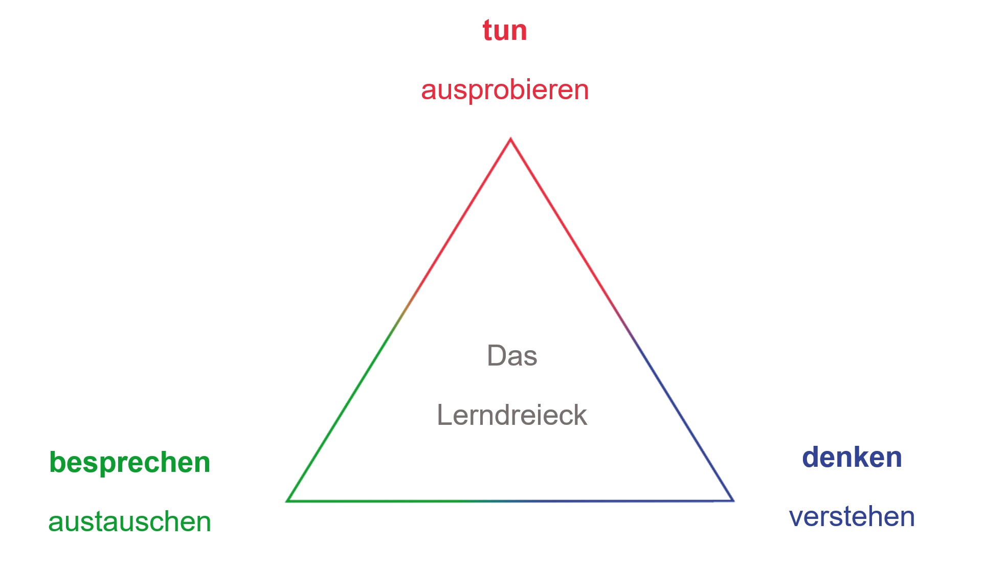 Ganzheitliche Lernprozesse bewegen sich in folgenden drei Dimensionen und werden von Lernenden in unterschiedlichen Ecken gestartet: